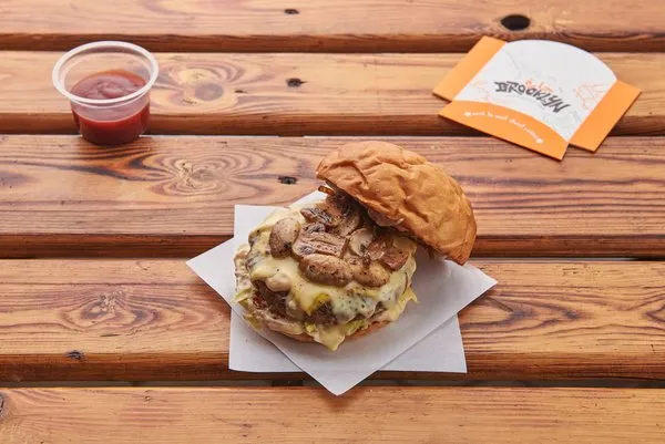 Navy YardBurger with lettuce, fresh tomato, cheddar cheese, caramelized onions, fried whole mushroom, sweet relish and thousand island sauce |