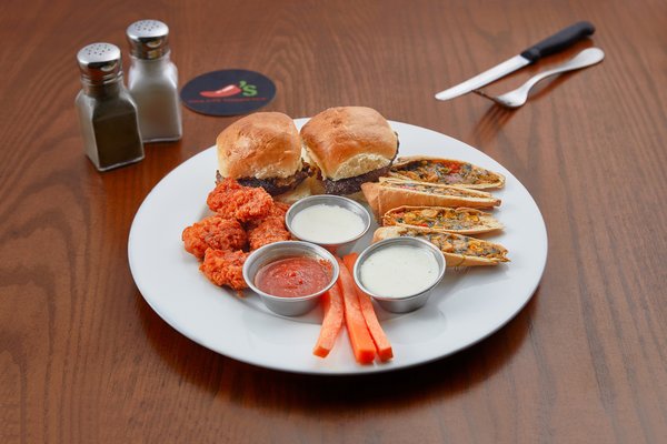 Crispy Chicken TacosTwo flour tortillas filled with crispy chicken breast, smoked beef bacon, tomatoes, cheese, lettuce, honey-chipotle drizzle served with homestyle fries |