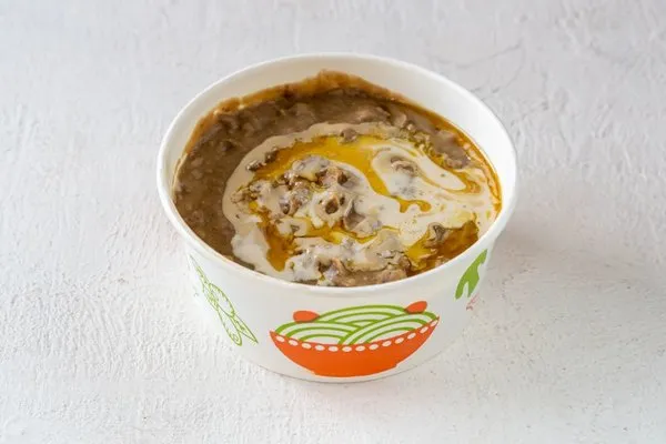 DamasaFoul with salsa, pastrami and eggs |