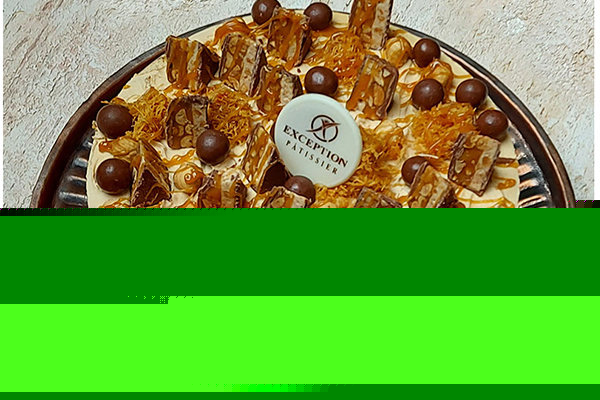 Konafa with caramel cream, chocolate pieces, snickers, hazelnuts and maltesers