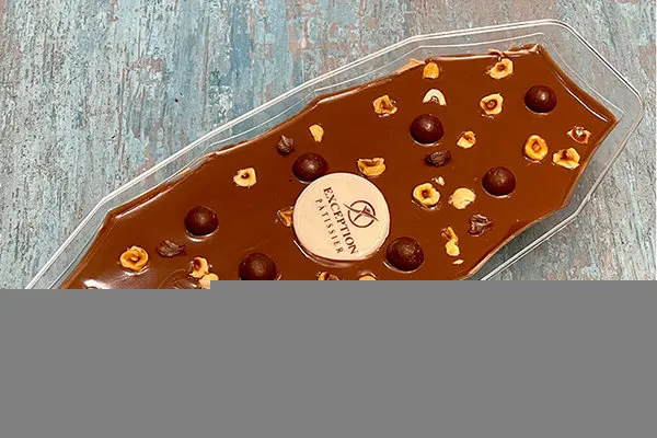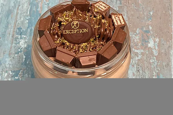 Chocolate konafa with nutella cream and kitkat chocolate sticks