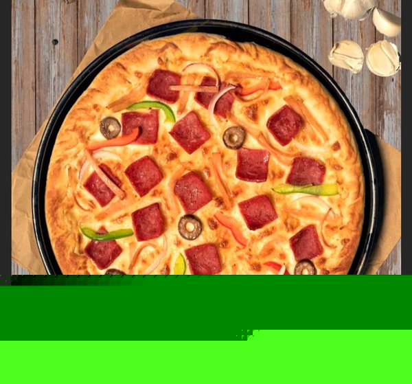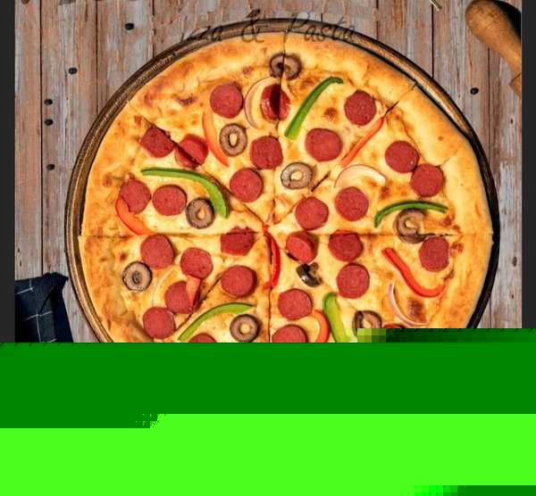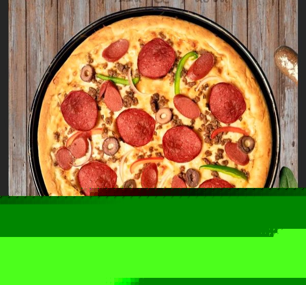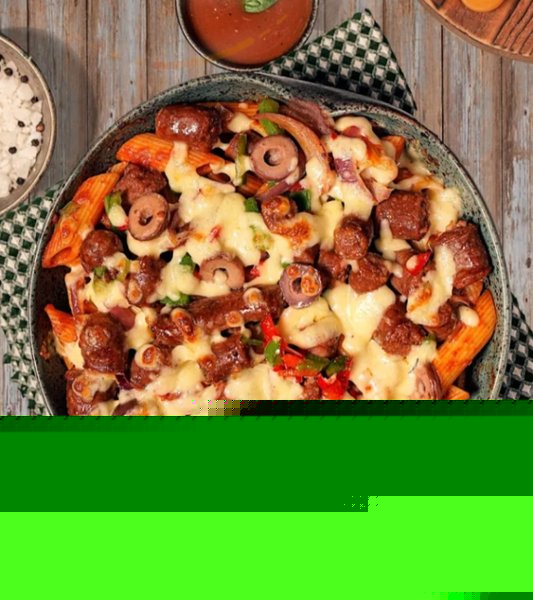 Beef, salami, hot dog, mozzarella, colored pepper, onion, olives