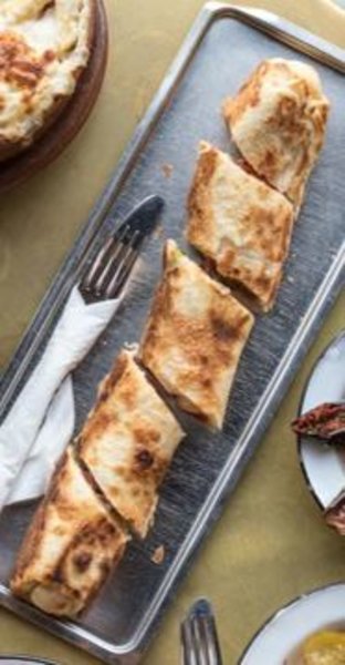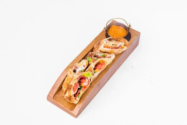 Minced beef, tomatoes, shredded greens, tehina sauce