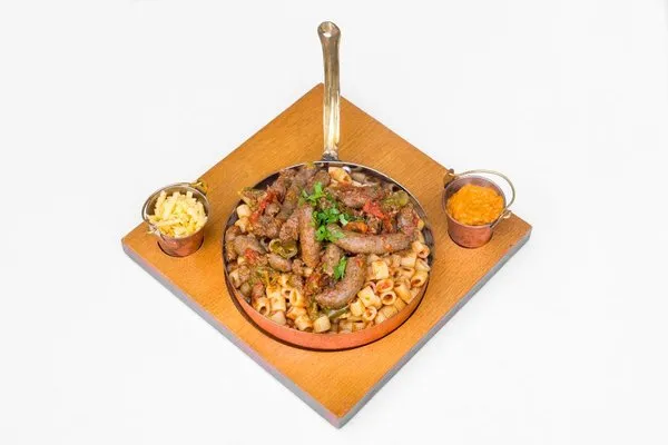 Oriental sausage, onions, peppers, cooked in our special spicy sauce