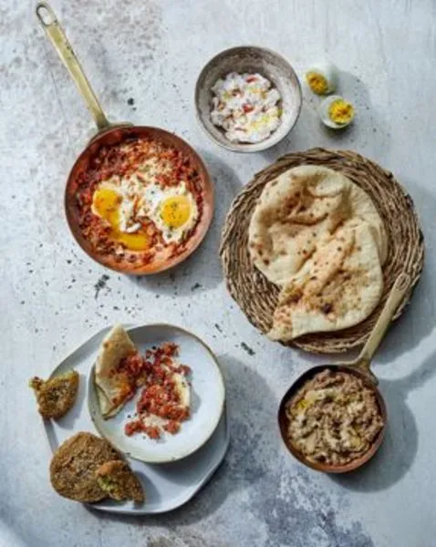 Eggs poached in a sauce of tomatoes, chili peppers and onions, spiced with cumin