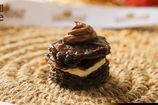 Mille feuille stuffed with chocolate cream and topped with chocolate