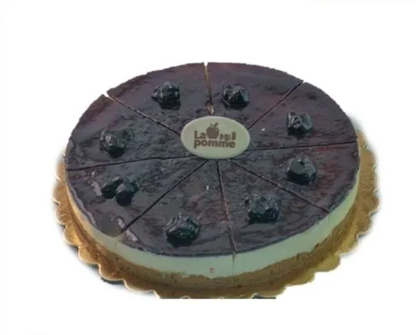 A layer of biscuit and cheese cream topped with a layer of blueberry