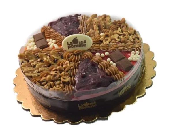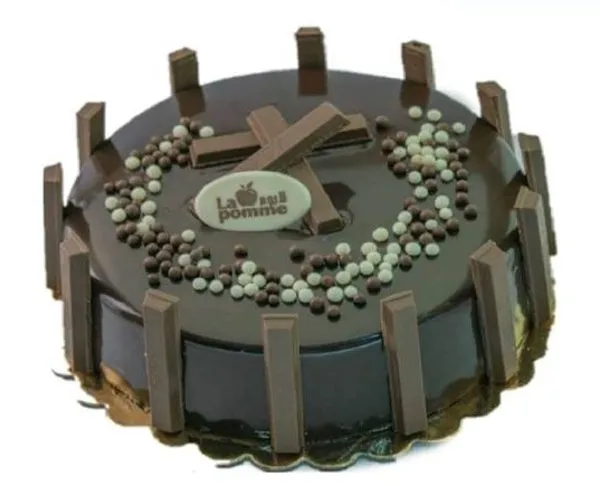 Chocolate fudge layers, galaxy chocolate cake stuffed with chocolate cream, nuts and topped with galaxy pieces