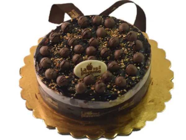 Milk chocolate mousse, almonds, chocolate and nutella glaze