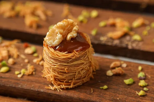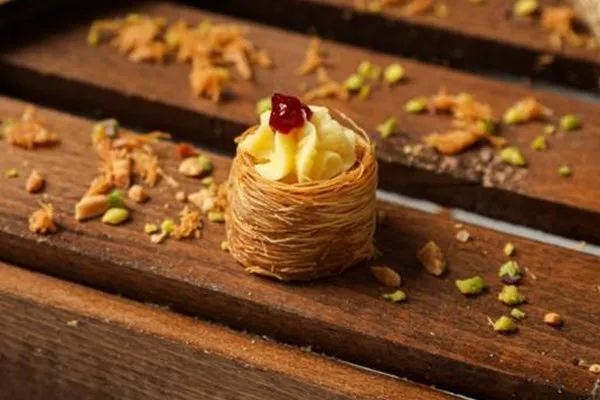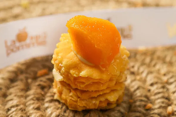 Buttery tart dough stuffed with caramel mousse and camel eye