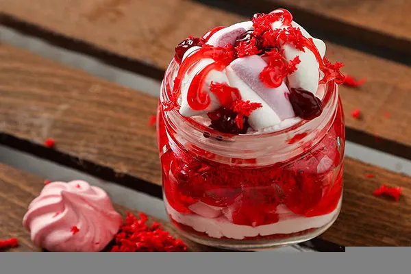 Nighty cake stuffed with special cream cheese and strawberry sauce