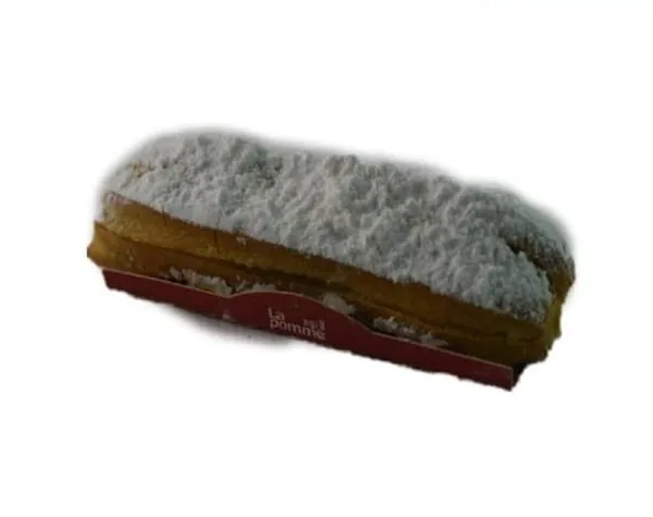 Vanilla sponge, whipped cream, topped with caramel sauce and walnut