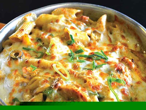 Chicken slices, alfredo sauce, fresh mushroom, mozzarella, fettuccine