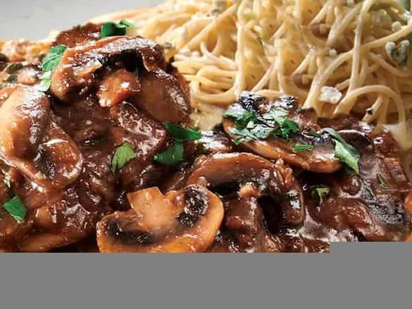 Two grilled chicken breasts, sweet and chili sauce, fresh mushroom, sliced caramelized onions, sweet and chili pasta