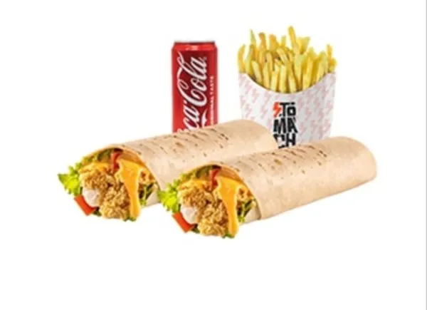 2 Single Boxes MealSingle box contains 2 pieces of spicy or regular broasted chicken, fries, bread, coleslaw |