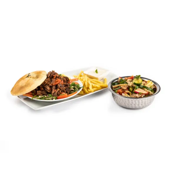 Sausage with potato, spicy potato, mix safayeh, mini shawerma mix, hummus salad, for 2 to 4 persons
