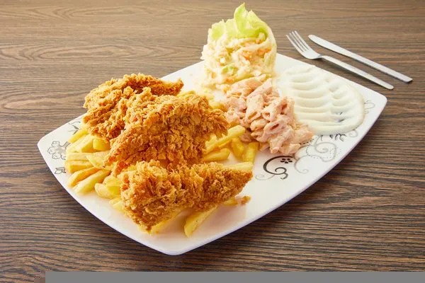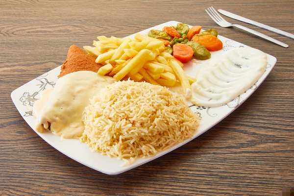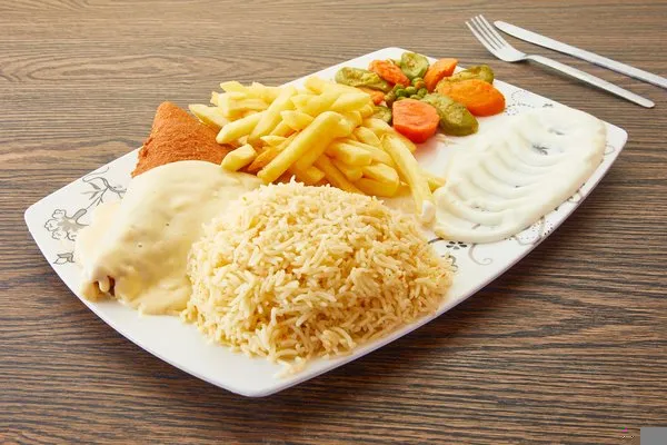 Served with rice, fries, pickles, garlic dip, spicy garlic dip and bread