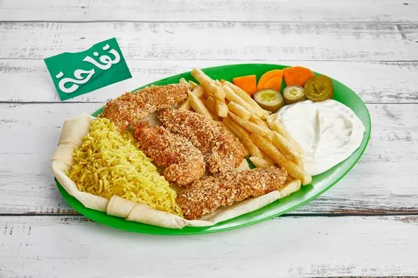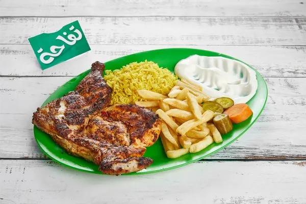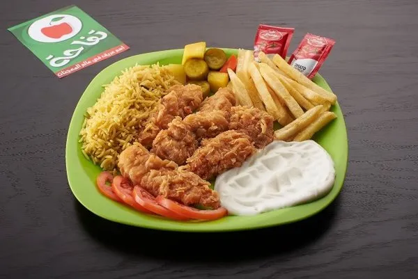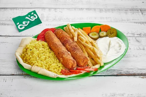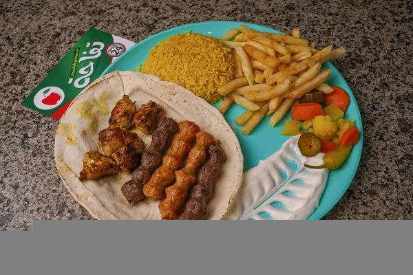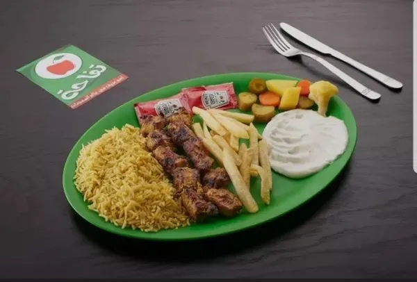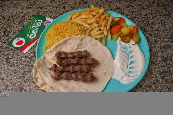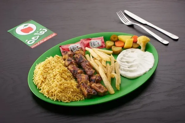 Served with rice, fries, garlic dip, ketchup, pickles, bread