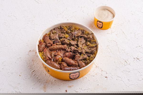 Beef, mayonnaise sauce, meat shawerma, cheddar sauce