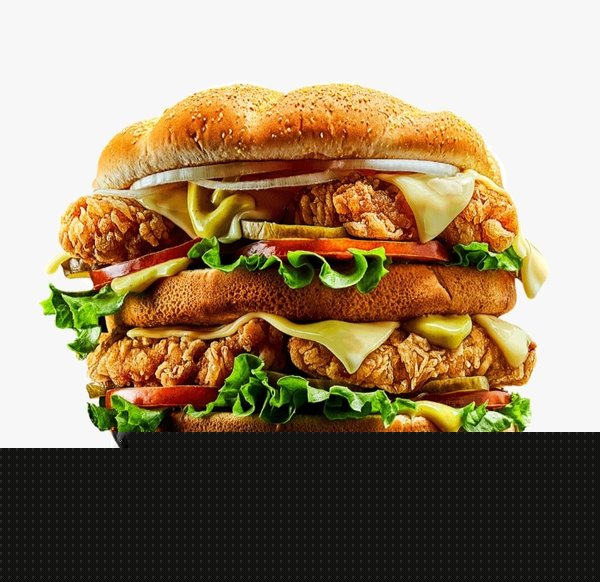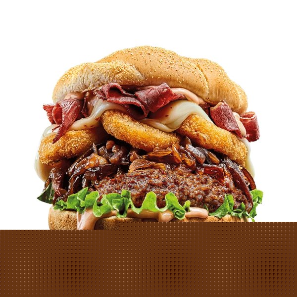 4 beef patties 150 gm with 4 layers of cheddar cheese in three layers of buns and our creamy secret sauce with pickles, tomatoes and lettuce