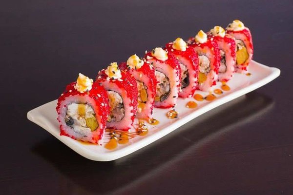Eel, cucumber, topped with avocado and teryaki sauce
