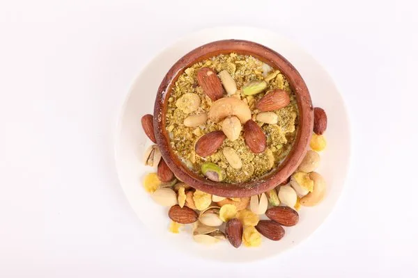 Rice Pudding with Nuts and Qeshta Tagen |