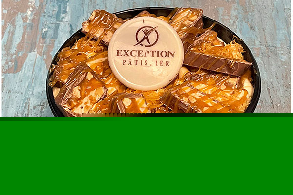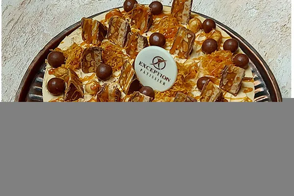 Konafa with caramel cream, chocolate pieces, snickers, hazelnuts and maltesers