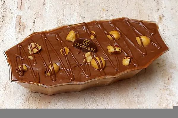 Chocolate konafa with nutella cream and kitkat chocolate sticks