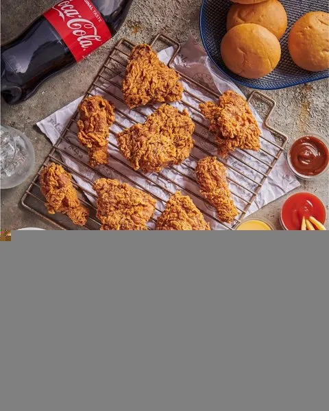 4 large chicken pieces, 4 small chicken pieces and 8 crispy strips pieces