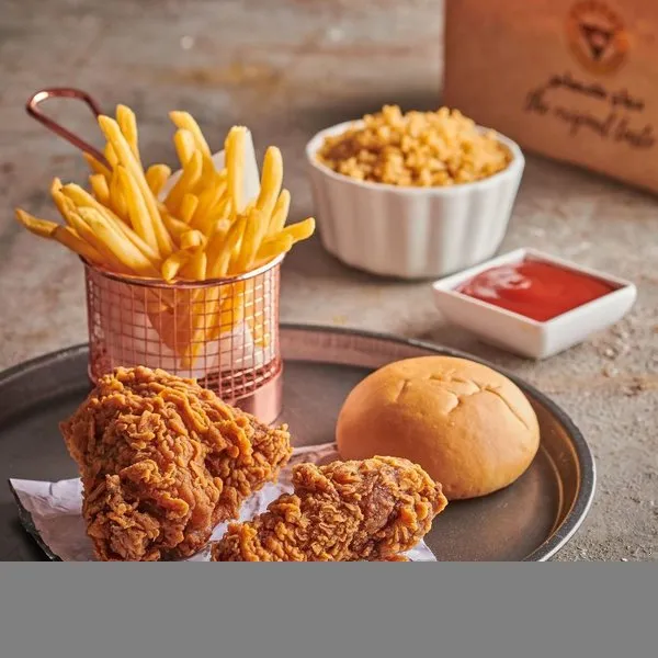 Chicken piece, 2 bread and fries