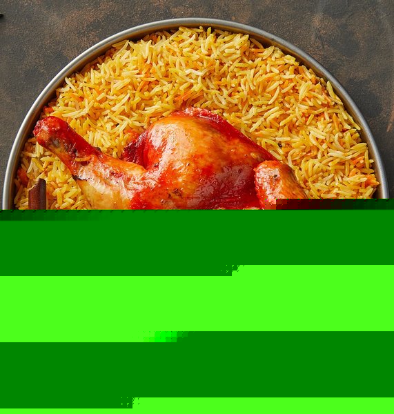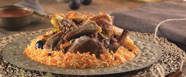 1 mandy meat, 1/4 shish tawook, 1/4 kofta, 1 molokhia tagen, 3 salads, 2 soups, kilo mandi rice, 1 sambousek
