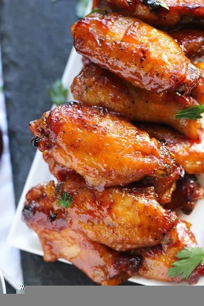 Buffalo wings with BBQ sauce and honey mustard sauce