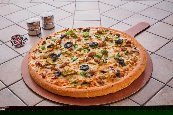 VegetarianGreen pepper, black olives, onions, mushroom, fresh tomato, mozzarella, pizza sauce |