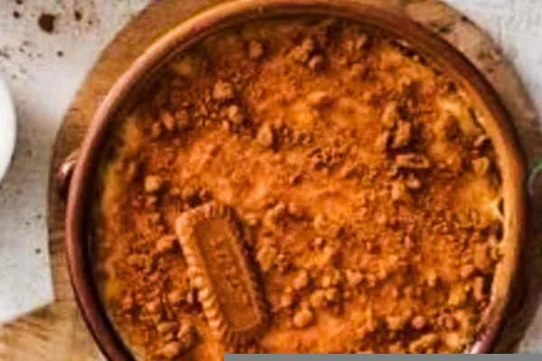 Konafa with baladi samna, lotus cream garnished with lotus biscuits