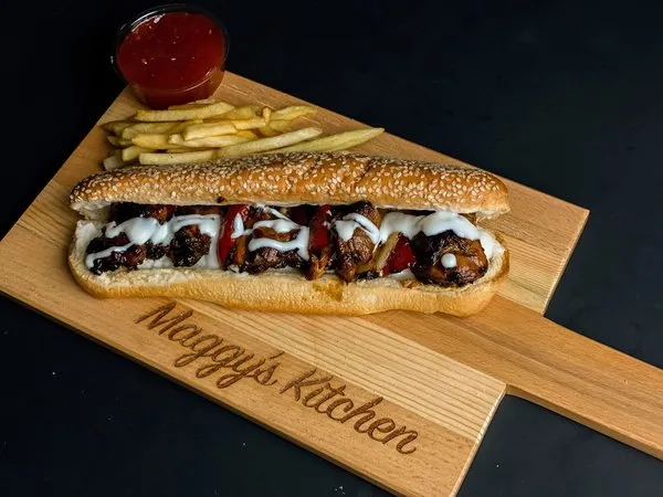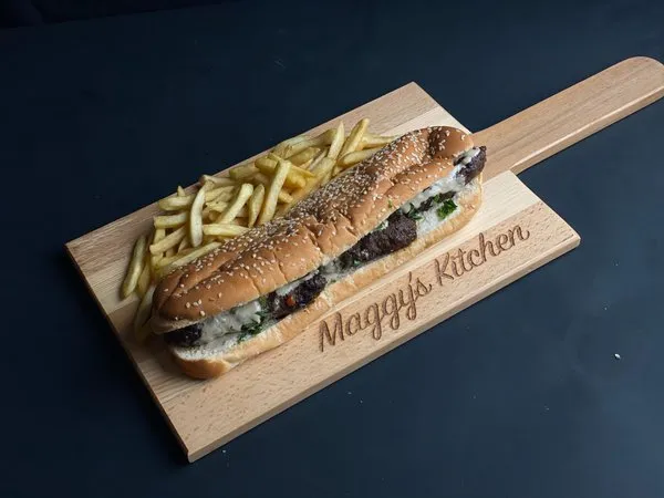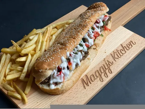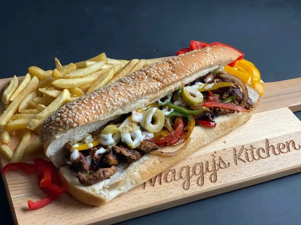 Maggys HawawshiAlexandrian hawawshi, olives, green pepper, melted cheese |