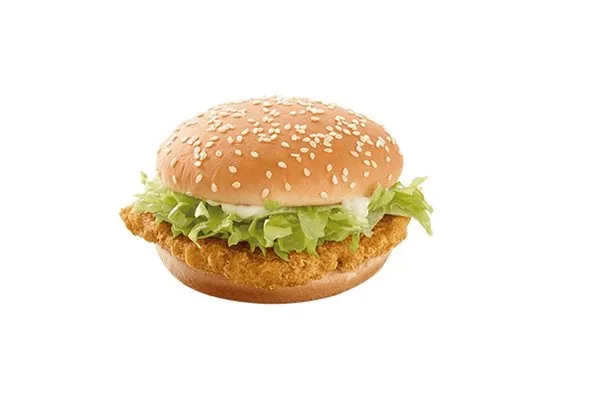 A juicy white chicken breast encased in our special crispy coating with cool mustard mayo sauce, fresh tomatoes and onions, crispy lettuce, all wrapped in a fresh sesame seed bun