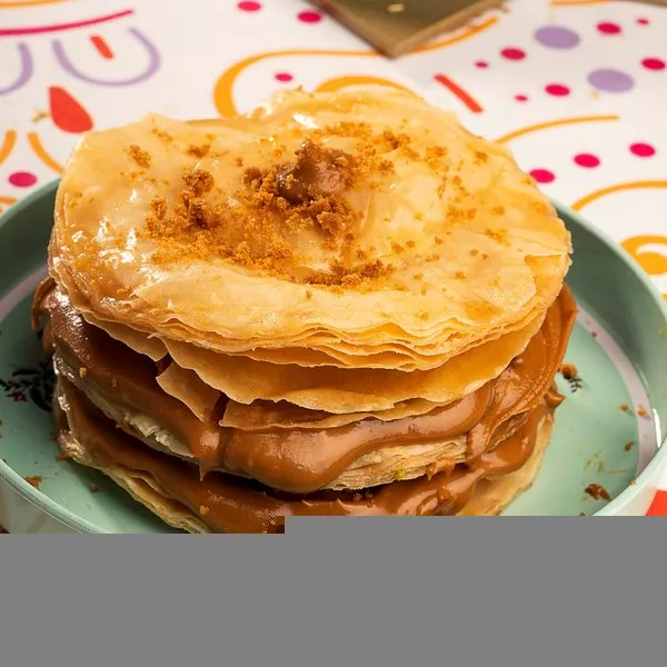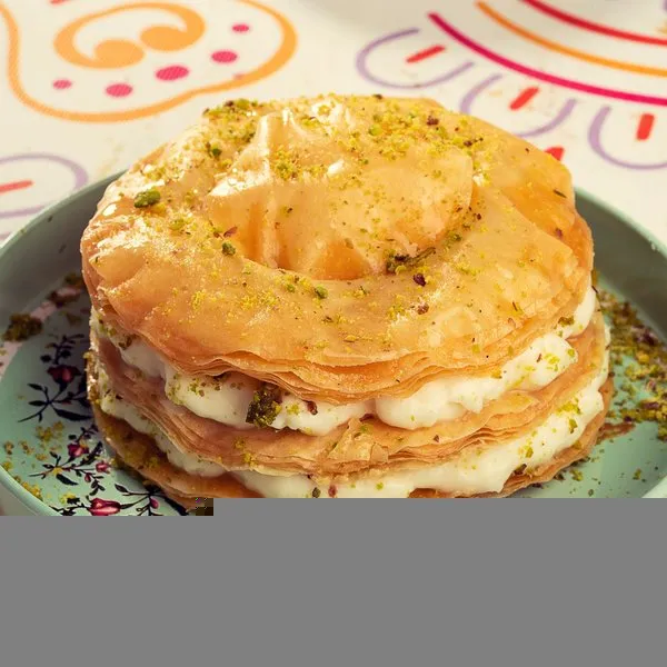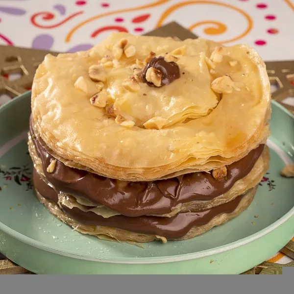 Om ali mille feuille with nuts, creme brulee and cinnamon, for 1 person