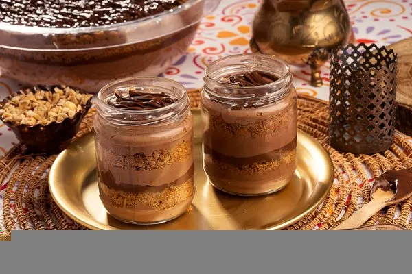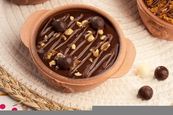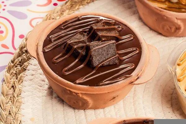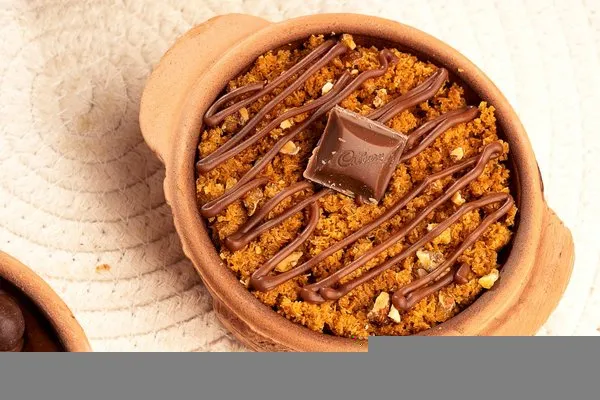 For 1 person, konafa with Belgian chocolate topped with layer of cacao