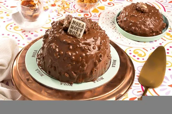 Konafa ball with nutella, nutella cream, hazelnut croquant, topped with nutella chocolate and hazelnut chocolate piece, for 1 person