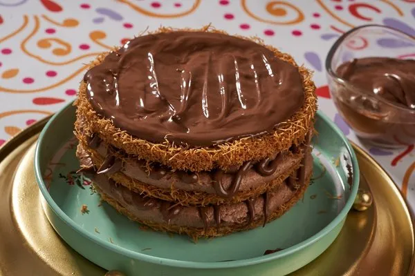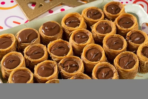 Konafa with Belgian chocolate topped with cacao, for 10 to 12 persons