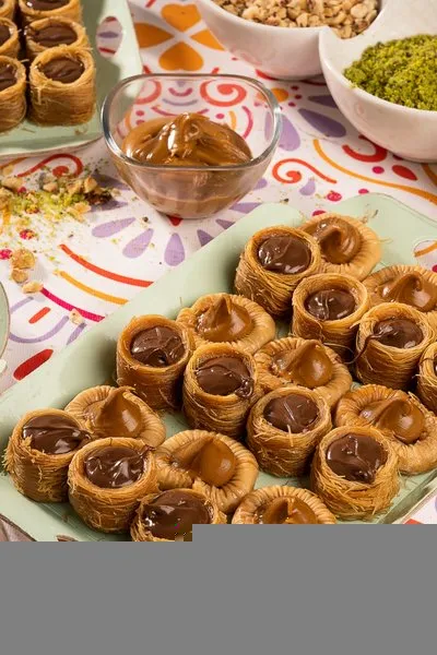 Konafa with nutella cream, lotus paste, lotus cream cheese, lotus biscuits, for 8 to 10 persons
