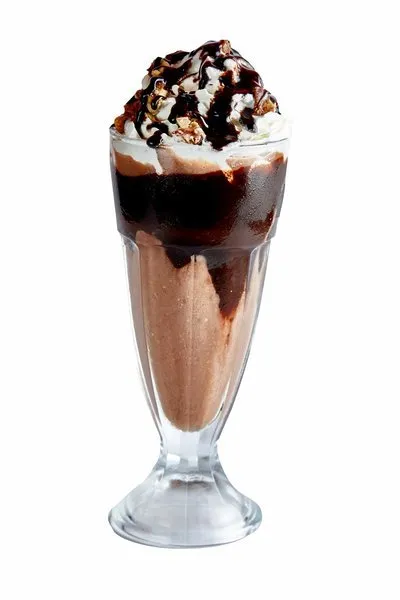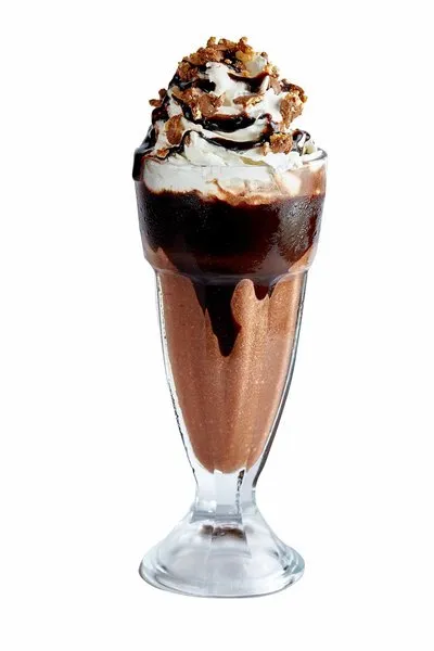 Chocolate milkshake blended with maltesers topped with whipped cream, chocolate sauce and maltesers