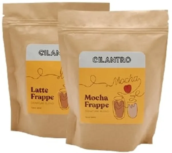 Cilantro's signature latte, mocha or light latte frappe powders tweaked to give you the best results at home to satisfy your sweet tooth