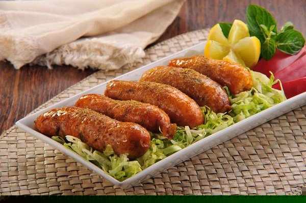 Grilled kofta Lebanese style, khashkhash sauce, French fries, fresh grilled vegetables and Halaby bread