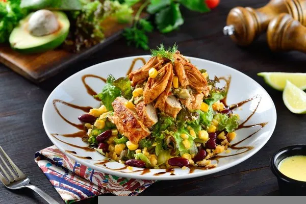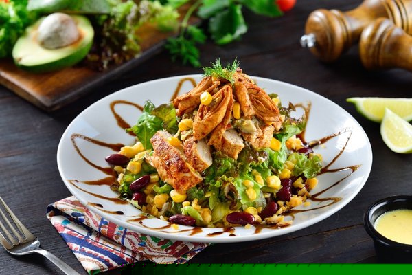 Grilled chicken and jalapeno, creamy pasta, colored pepper, mustard and BBQ sauce