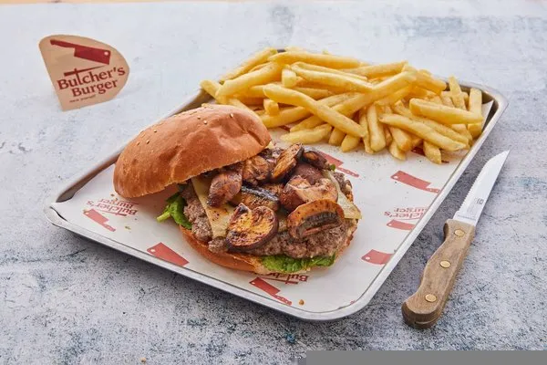 Double Swiss cheese, grilled mushrooms, caramelized onions, smoky mayo
