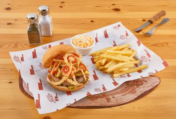 300 gm, double cheese, beef bacon, caramelized onions, jalapenos, lettuce, pickles, garlic mayo