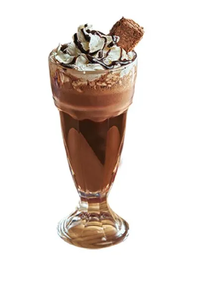 Chocolate milkshake blended with oreo topped with whipped cream, chocolate sauce and oreo