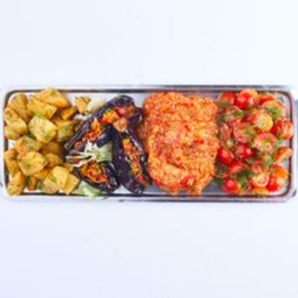 Garlic dip, red baba ghannoug, yogurt salad, sriracha tehina