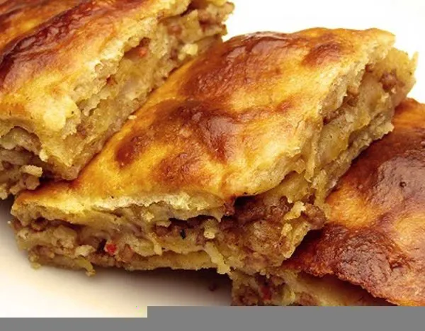 Turkish Moussaka with beefsteak slices & raisins in bechamel sauce
